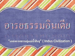 เรื่อง อารยธรรมอินเดีย เสนอ อาจารย์ปรางค์สุวรรณ ศักดิ์โสภณกุล คณะผู้จัดทำ นางสาวณิชกานต์ พงษ์ยิ่งพิศ เลขที่ 12 นางสาวธัญจิรา เนรมิตสถิตวงศ์ เลขที่ 17 นางสาวปัณฑารีย์ ทองหุ้ย เลขที่ 24 โรงเรียนสตรีวิทยา ปีการศึกษา 2556
