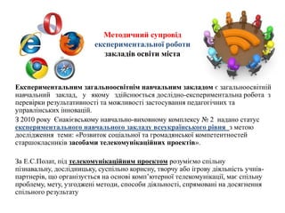 Експериментальним загальноосвітнім навчальним закладом є загальноосвітній