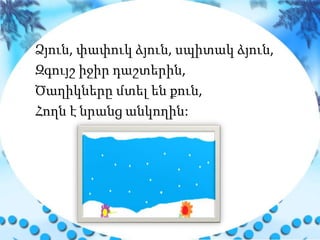 Ձյուն, փափուկ ձյուն,սպիտակ ձյուն,