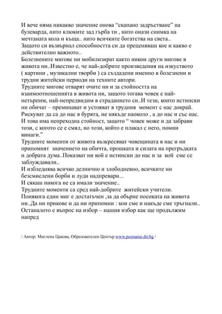 Трудните мигове отварят очите ни и за стойността на