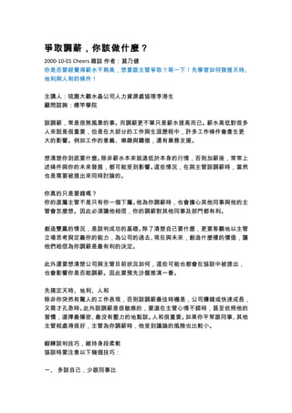 爭取調薪,你該做什麼? 2000-10-01 Cheers 雜誌