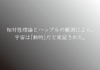相対性理論とハッブルの観測により、 宇宙は 「動的」 だと実証された。