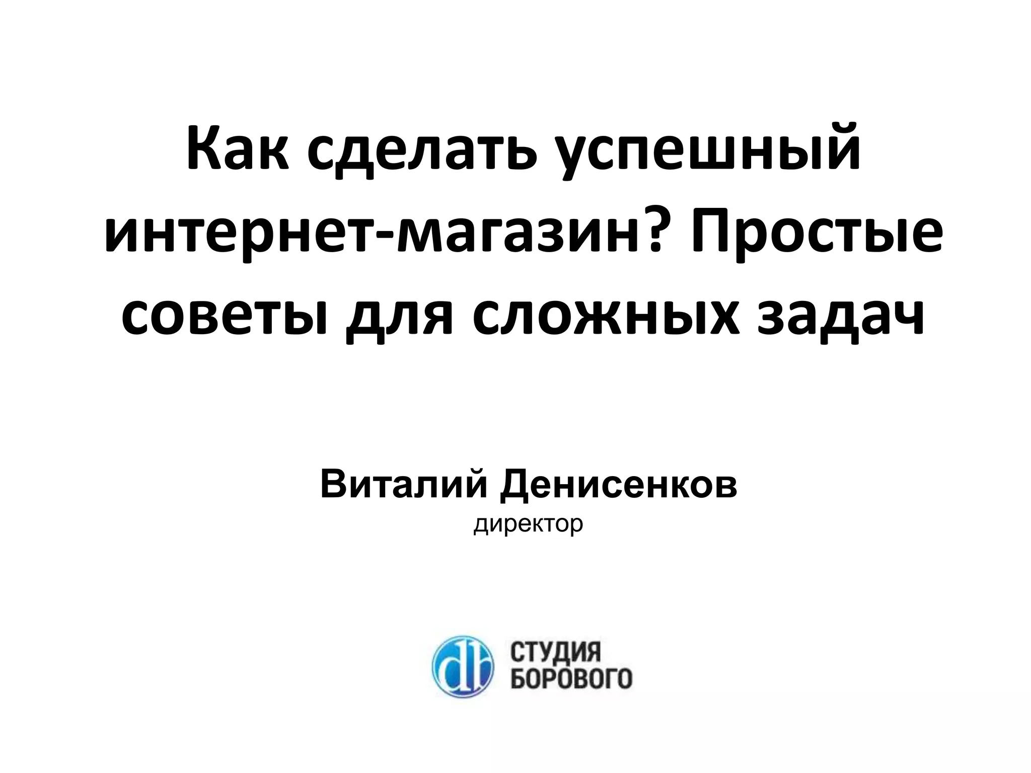Документ предоставляет советы по созданию успешного интернет-магазина, акцентируя внимание на важности правильной организации интерфейса, использования CMS и технических аспектов. Основные действия, такие как A/B-тестирование и создание привлекательного контента, способствуют увеличению конверсии и удовлетворенности клиентов. Также обсуждаются ошибки разработки и предложения услуг от студии, занимающейся разработкой интернет-магазинов.