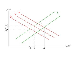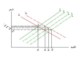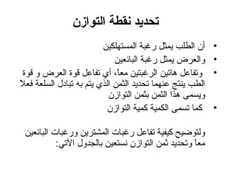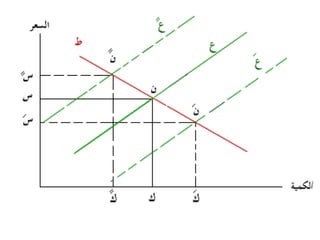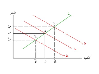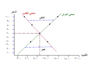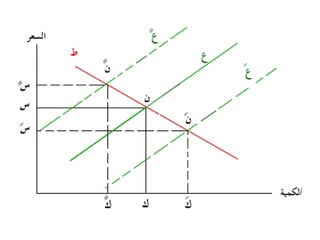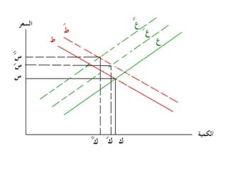 تتناول الوثيقة توازن السوق الذي يتحدد من خلال تفاعل العرض والطلب، حيث أن زيادة العرض تؤدي إلى انخفاض الأسعار والعكس صحيح. كما تشير الوثيقة إلى تأثير العوامل الخارجية على منحنيات العرض والطلب وكيف يمكن لهذه العوامل أن تؤدي إلى تغيرات في السعر والكمية التوازنية. تقدم الوثيقة أيضًا حالات مختلفة لتغير العرض والطلب وتأثيراتها المحتملة على السوق.