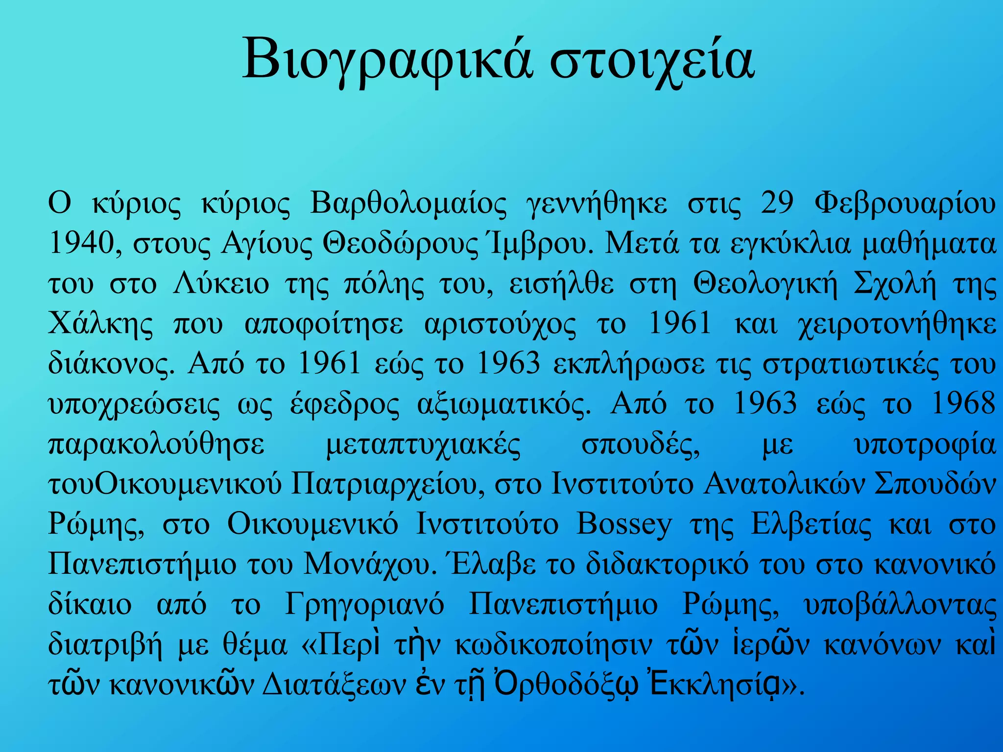 πατριαρχης βαρθολομαιος κωνσταντινουπολεως PPTX