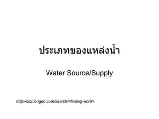 ประเภทของแหล่งน้ำ Water Source/Supply