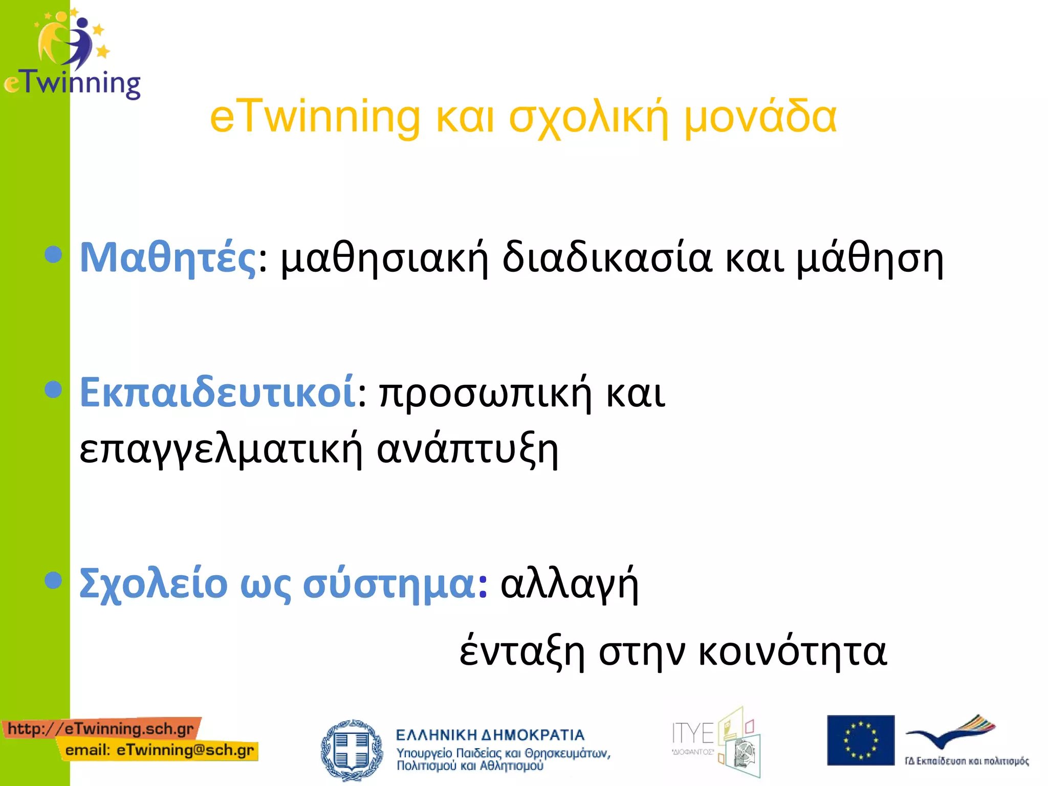 • Το eTwinning υποστηρίζει την
