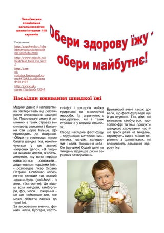 їжі. Посилювачі смаку й замінники в таких стравах викликають звикання і бажання їсти щораз більше. Що