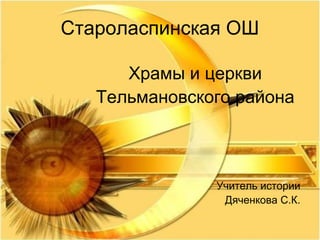 Документ описывает храмы и церкви Тельмановского района, включая Свято-Преблаженский храм в селе Коньково, известный своими святынями и целебным источником. Также упоминается восстановление Кузнецово-Михайловской церкви, которое стало значительным событием для местного сообщества, а также история православия в селе Каменка и строительство храма Вознесения Господня. В целом, документ иллюстрирует важную роль церквей в культурной и духовной жизни района.