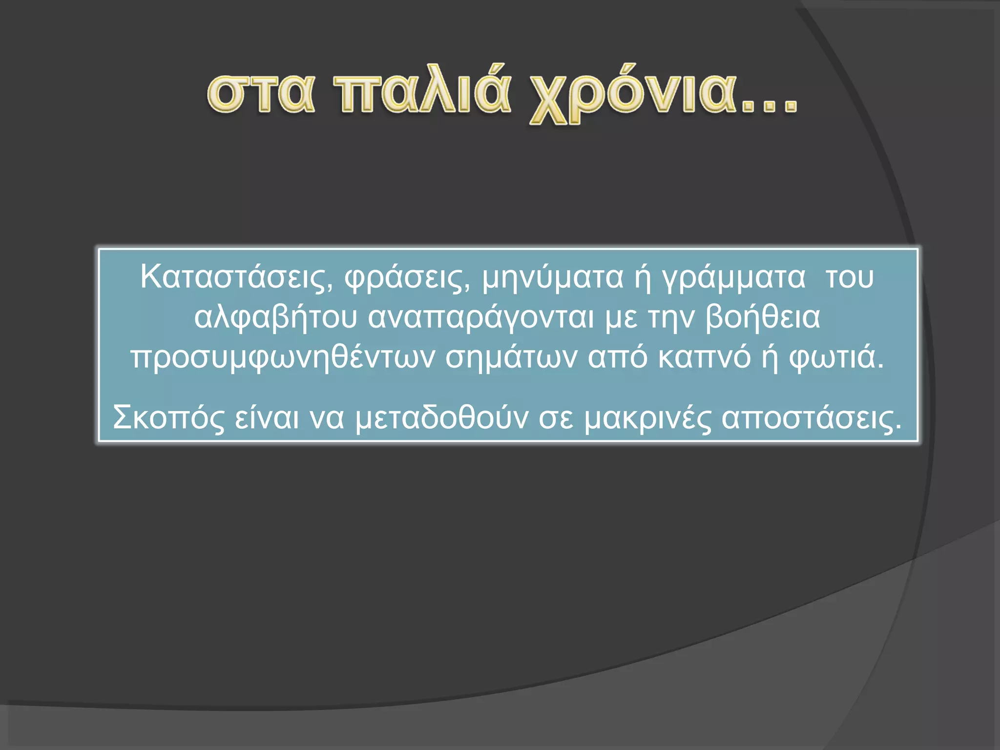 προσυμφωνηθέντων σημάτων από καπνό ή φωτιά.