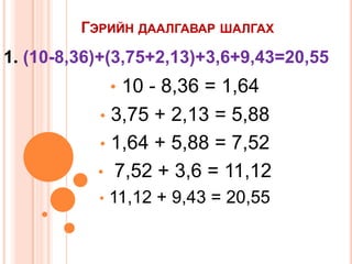 ГЭРИЙН ДААЛГАВАР ШАЛГАХ