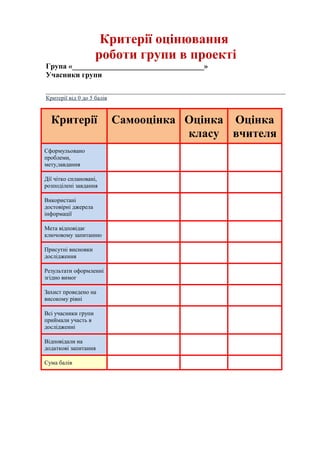 критерии оценивания работы группы в проекте 1. Критерії оцінювання