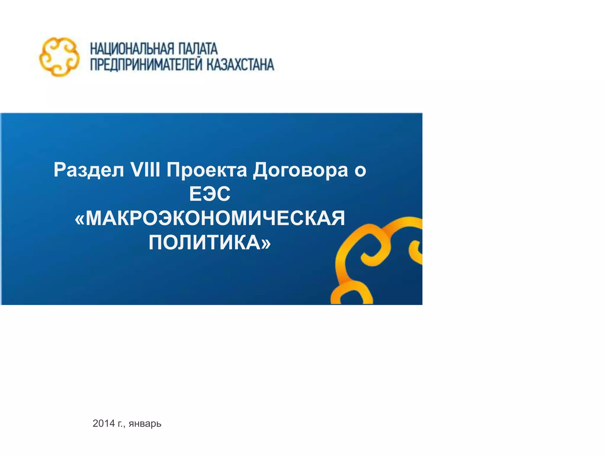 Документ содержит раздел viii проекта договора о ЕАЭС, посвященный макроэкономической политике, включая соглашения и прогнозы экономического развития на 2014-2016 годы. Описываются основные макроэкономические показатели, такие как бюджетный дефицит и уровень инфляции, а также механизмы стабилизации экономической ситуации между государствами-членами. В документе затрагиваются несогласованные позиции Казахстана по конкретным направлениям согласованной макроэкономической политики.