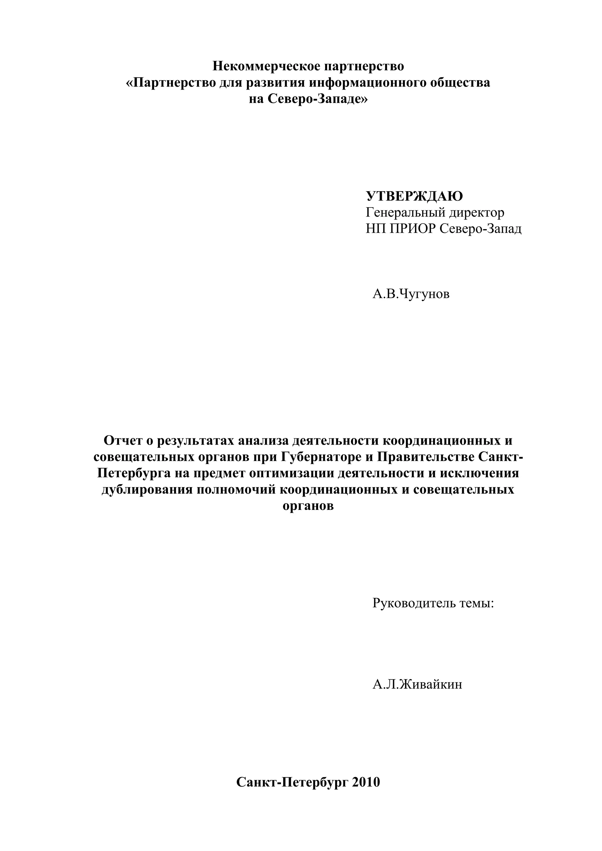 Документ представляет отчет о анализе координационных и совещательных органов Санкт-Петербурга, с целью оптимизации их деятельности и исключения дублирования полномочий. В отчете рассматриваются статистические данные, нормативные документы и рекомендации по устранению избыточных функций, а также выявляются основные проблемы и недостатки в организации работы этих органов. Основное внимание уделяется различиям в законодательном регулировании деятельности органов и их эффективности.