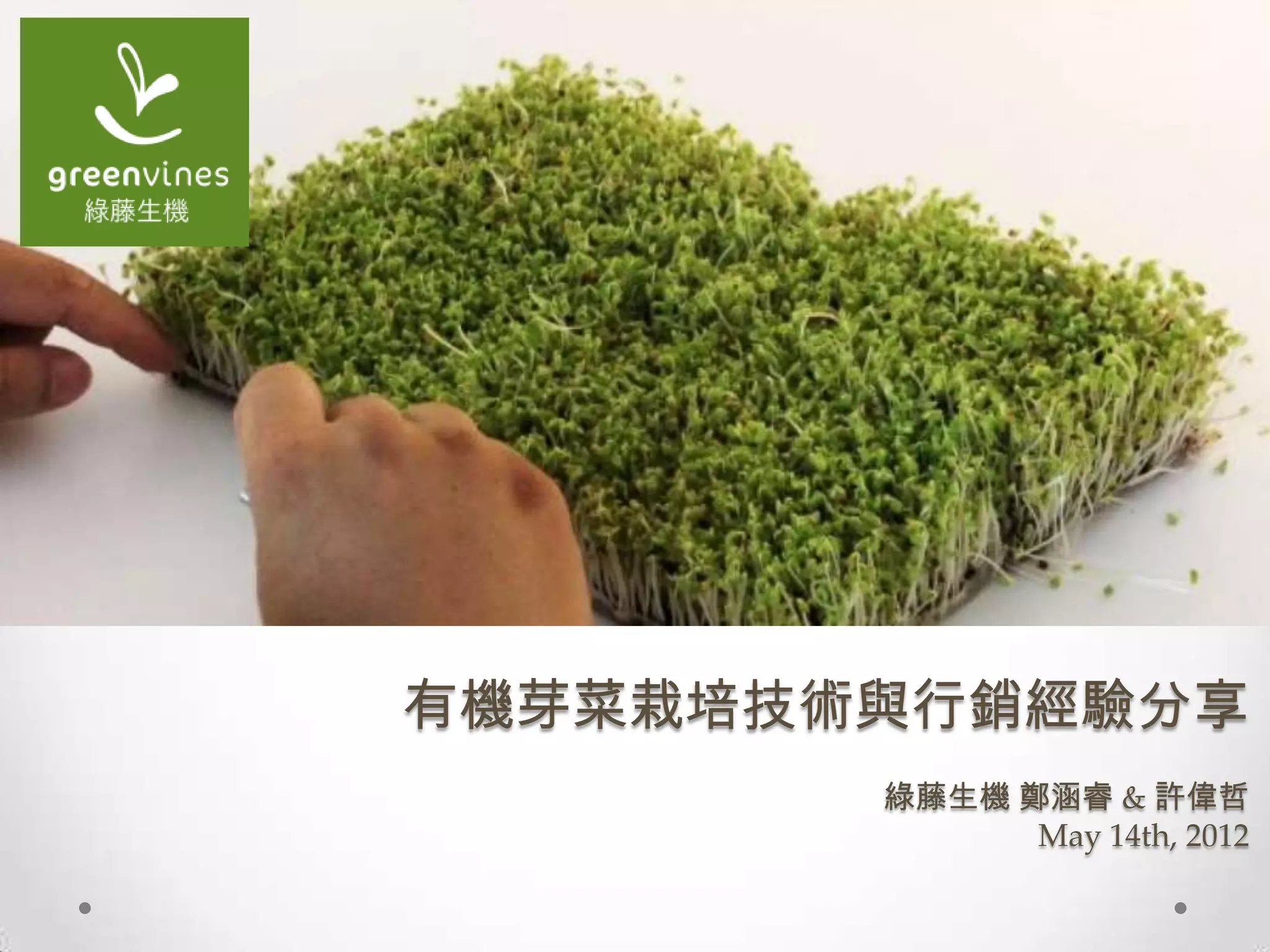 本文件分享了有机芽菜的栽培技术和市场经验,包括讲者的背景和绿藤生机公司的成立与发展。在介绍芽菜的营养价值时,强调了芽菜的丰富养分、高酵素来源及零硝酸盐残留的优点。文中还探讨了不同类型芽菜的健康益处及其在饮食中的重要性。