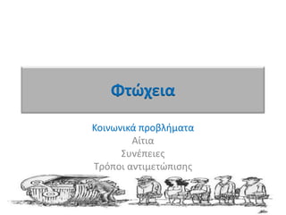 Η φτώχεια είναι ένα από τα μεγαλύτερα προβλήματα που μαστίζουν τις κοινωνίες. Σε αυτήν την παρουσίαση το κοινωνικό πρόβλημα της φτώχειας αναλύεται, αναφέροντας τα αίτιά του, τις συνέπειές του και τους τρόπους αντιμετώπισής του.