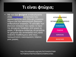 •Με τον όρο φτϊχεια αναφερόμαςτε