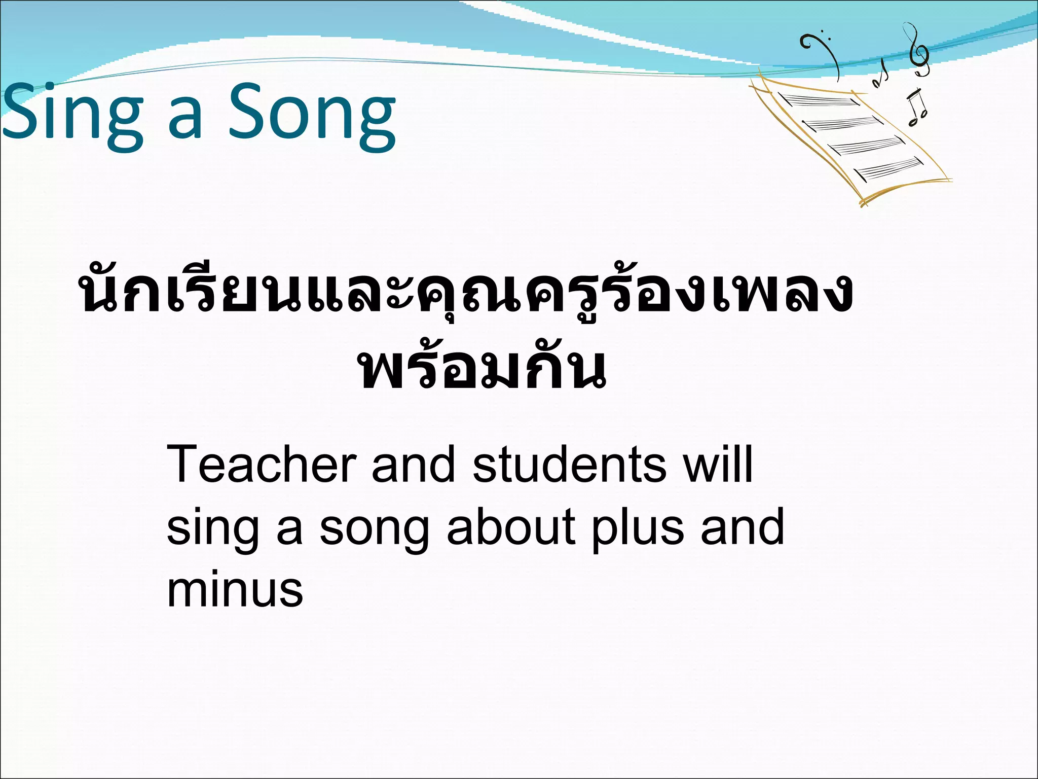 Sing a Songนักเรียนและคุณครูร้องเพลง พร้อมกัน Teacher and students will sing a song about plus and minus - 3.