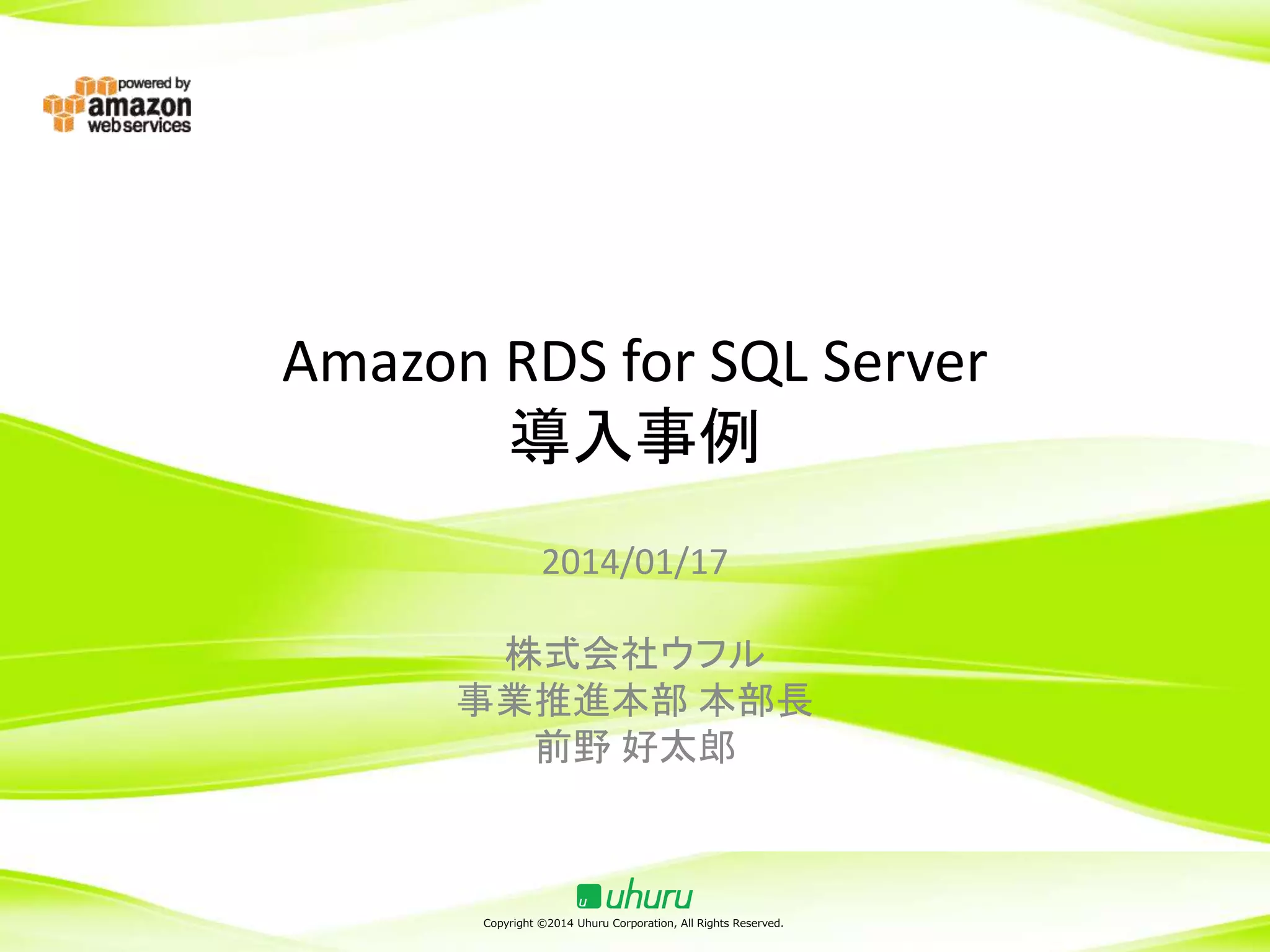 202111 AWS Black Belt Online Seminar AWSで構築するSmart Mirrorのご紹介 [よくわかるクラウドデータベース] Amazon RDS for SQL Server導入事例