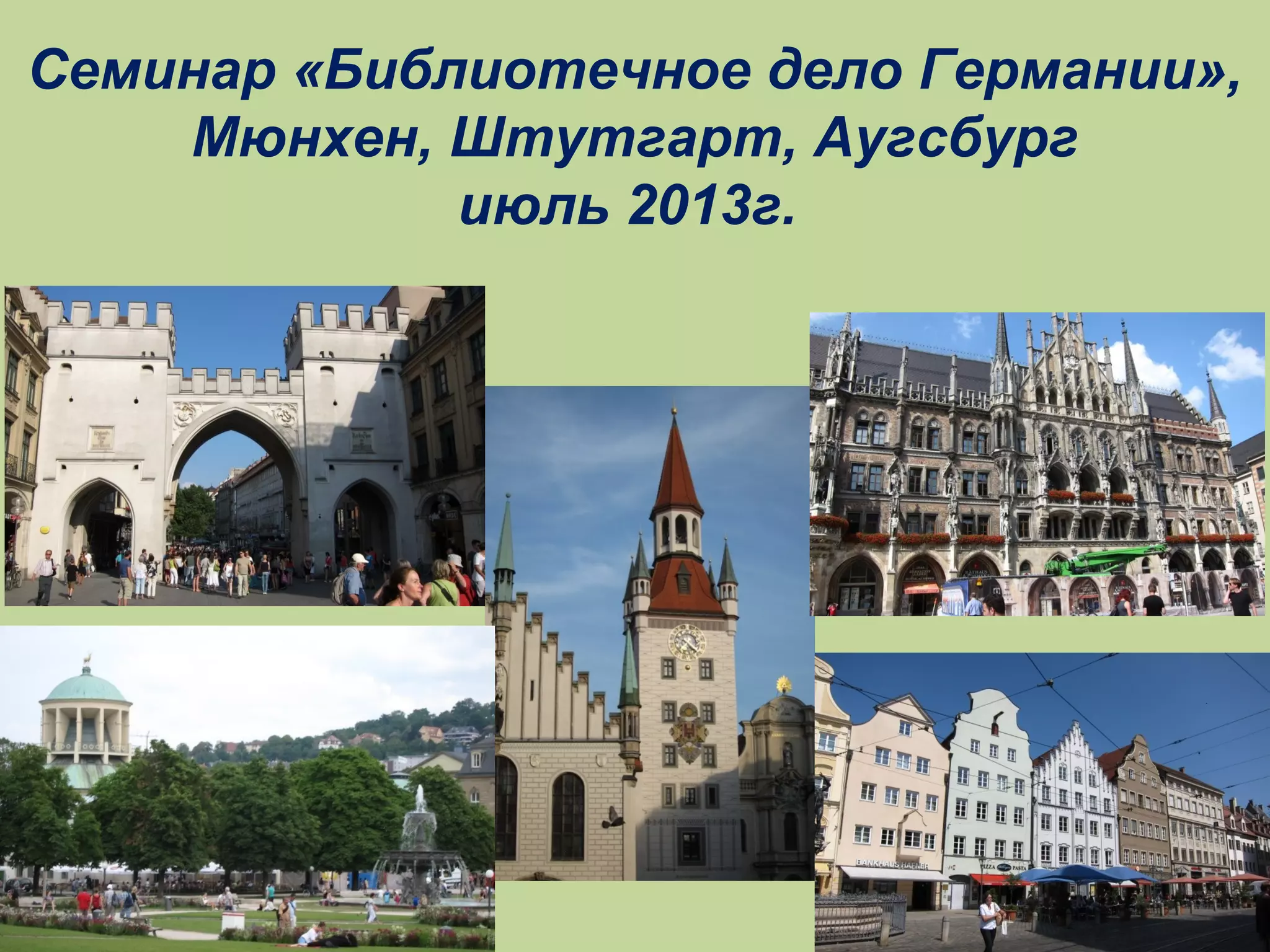 Семинар «библиотечное дело германии» состоялся в июле 2013 года, организованный Гете-институтом, собравшим директоров и библиотекарей из Восточной Европы и Центральной Азии. Документ описывает деятельность Гете-института, его роль в международном культурном обмене, а также работу нескольких значительных библиотек в Германии, таких как Баварская государственная библиотека и Публичная городская библиотека Мюнхена. В тексте приведены данные о количестве пользователей, материалах, и инновациях в сфере библиотечного дела.