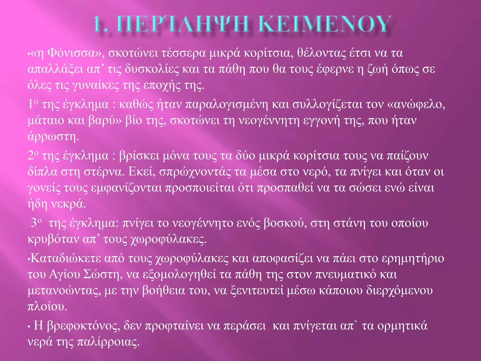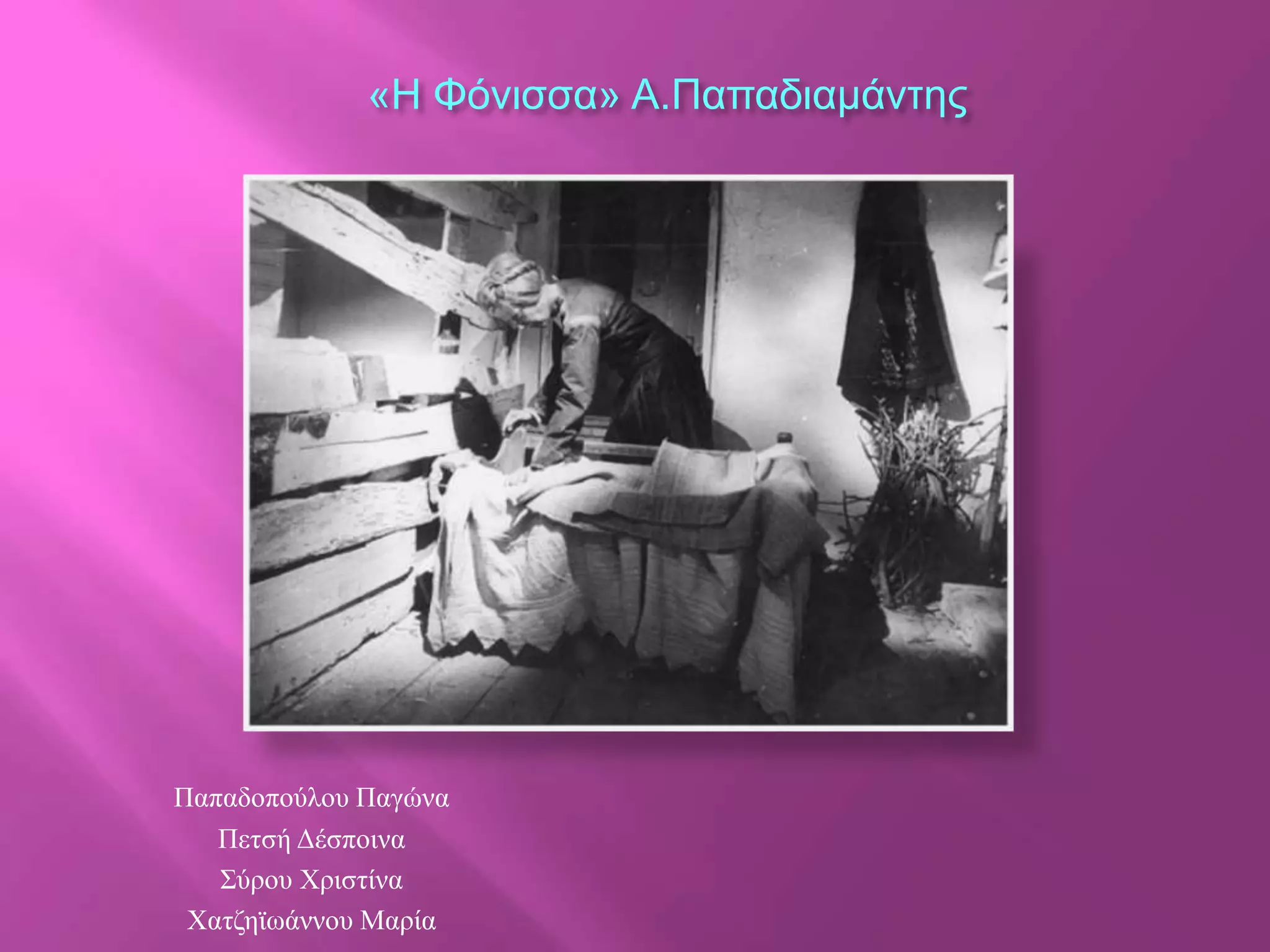 Παρουσίαση του έργου του Α. ΠΑΠΑΔΙΑΜΑΝΤΗ, η φόνισσα από μαθητές του Β4 του ΓΕΛ ΒΑΣΙΛΙΚΩΝ Υπεύθυνη φιλόλογος, Δήμητρα Μπεχλιβάνη- Σαββοπούλου