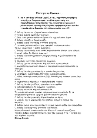 1. Να ηη είπε έλας Βίθηωρ Οσγθώ, ο Γάιιος κσζηζηορηογράθος,