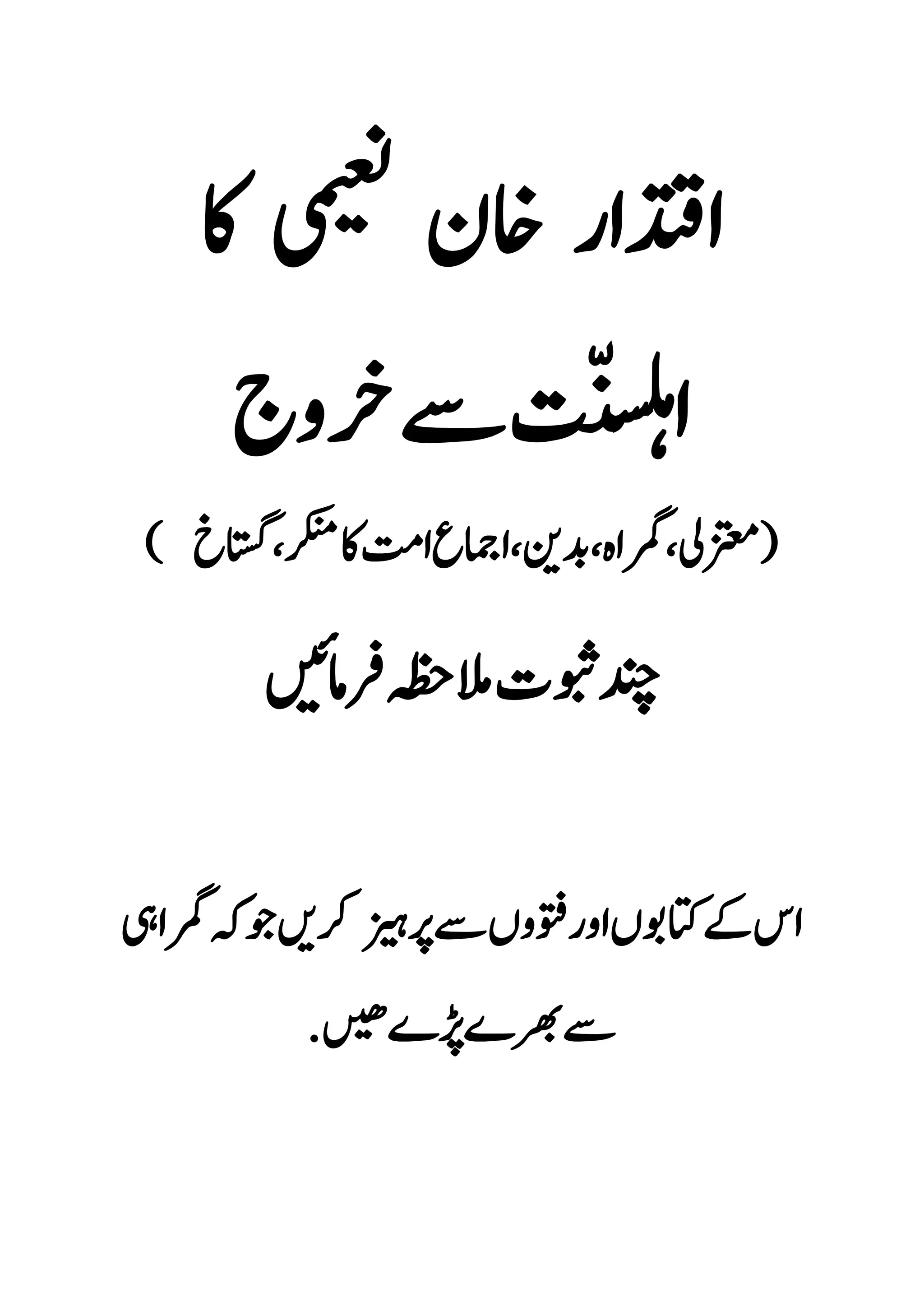 Mufti Iqtidar Naeema Ka Ahlesunat Sai Khrooj, Badmazhab Iqtidar Naeemi