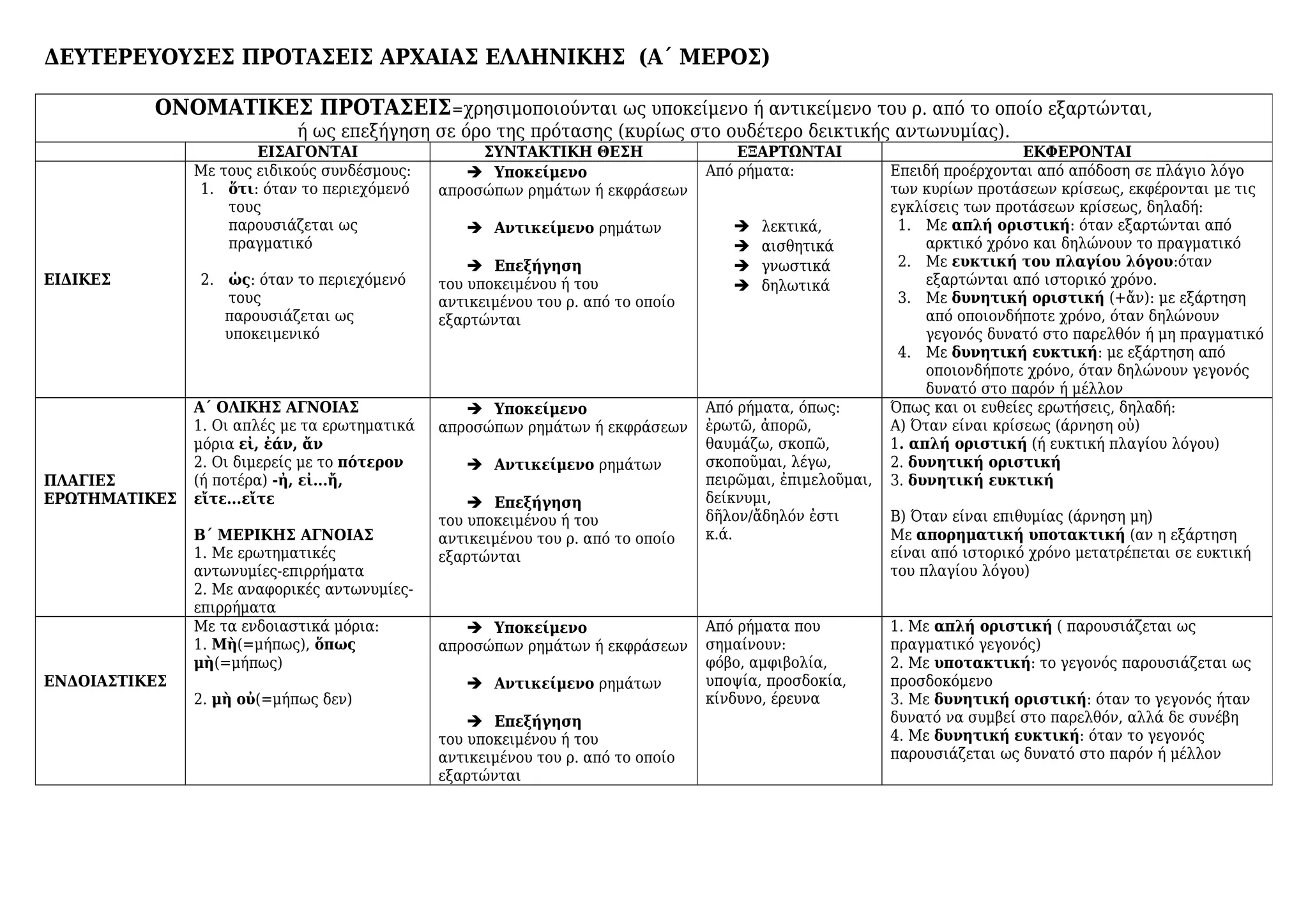 ΔΕΥΤΕΡΕΥΟΥΣΕΣ ΠΡΟΤΑΣΕΙΣ ΑΡΧΑΙΑΣΕΛΛΗΝΙΚΗΣ (Α΄ ΜΕΡΟΣ)
