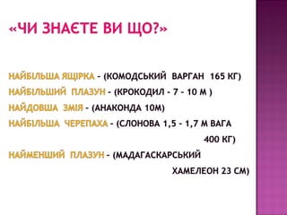 БУДОВУ ЗМІЇ, КРОКОДИЛА, ЧЕРЕПАХИ, РИБИ