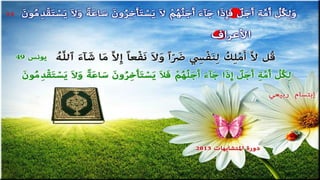 (ولِكل أُمة أجلفإِذا جاء أجلُهم ال يستأْخرون ساعة وال يستقدمون