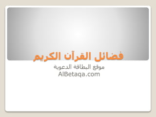 تتناول الوثيقة فضائل القرآن الكريم ودوره في حياة المسلمين. تسلط الضوء على أهميته كدليل إلهي ومرشد روحي. تقدم معلومات عن كيفية تأثير القرآن على الأفراد والمجتمعات.