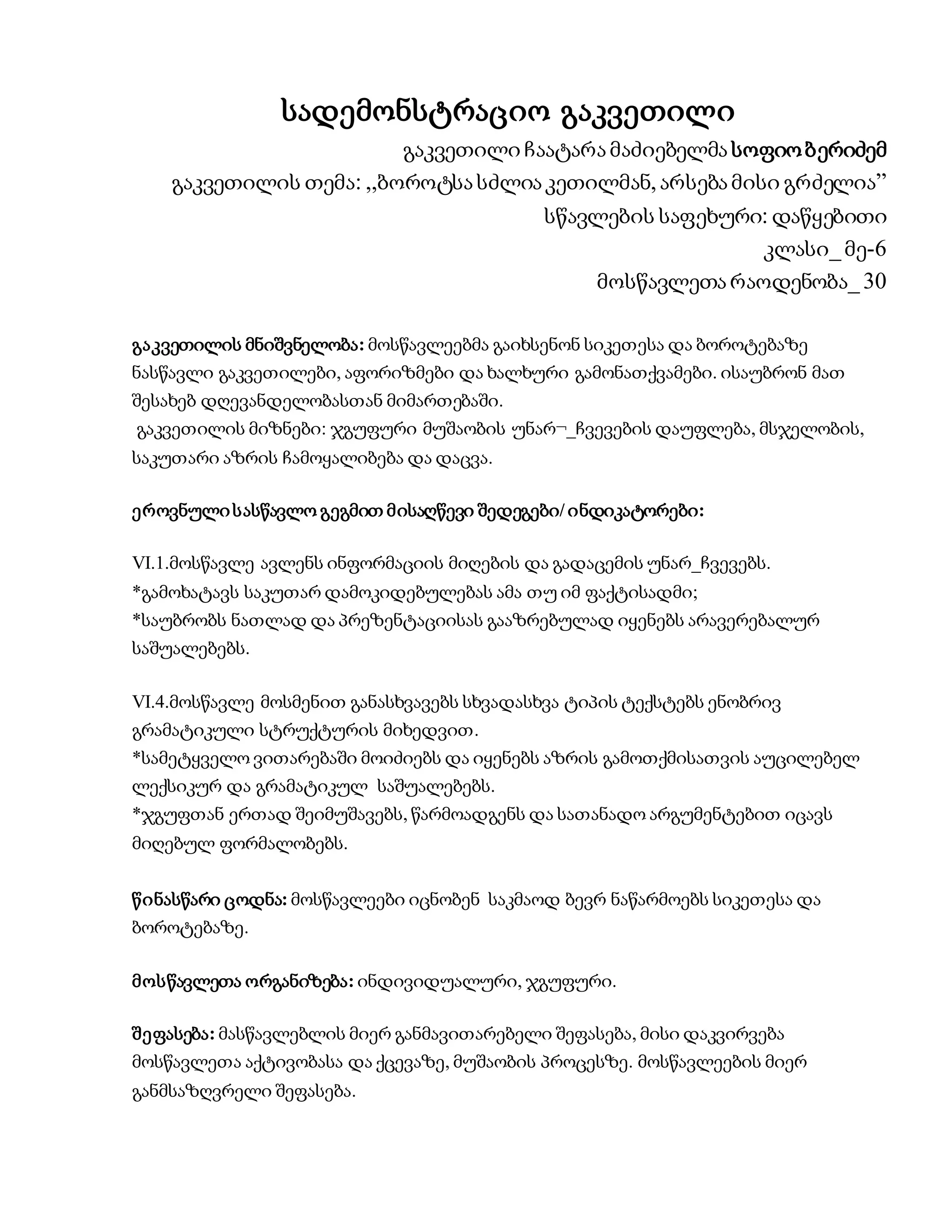 VI.1.მოსწავლე ავლენს ინფორმაციის მიღების და გადაცემის უნარ_ჩვევებს.