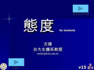 文档探讨了态度对人生和职业成功的重要性,强调态度的力量超过学历、经验和技能。它强调积极的态度能够促使个人成长和解决问题,同时也讨论了在各类情境中应对态度的影响。文中提到,改变态度可以改变人生,并提供了多个实例以说明这一观点。