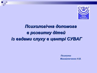 Similar to Н.В.Михайлюченко. Психологічна допомога в розвитку дітей із вадами слуху в центрі «СУВАГ»