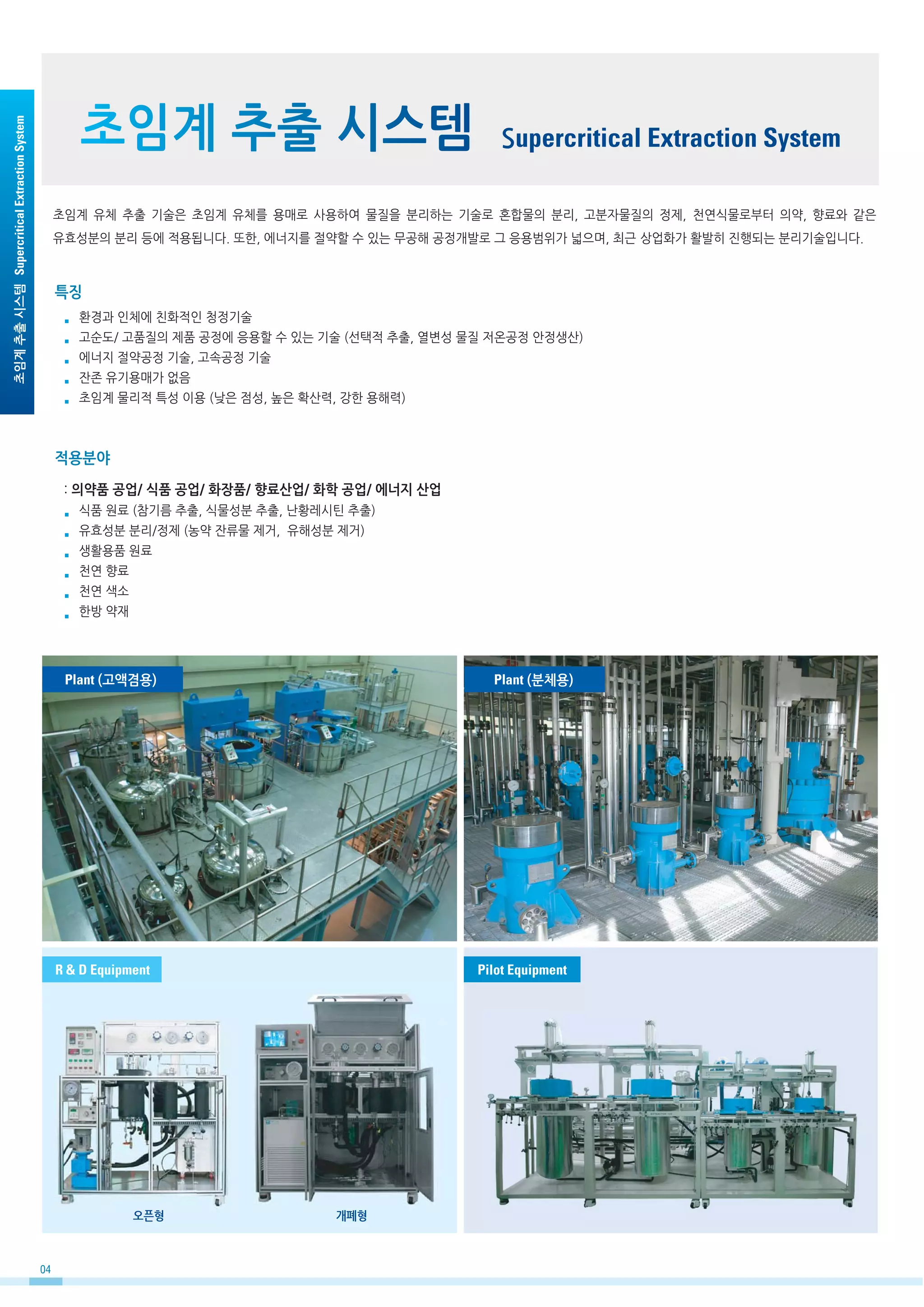 유효성분의 분리 등에 적용됩니다. 또한, 에너지를 절약할 수 있는 무공해 공정개발로 그 응용범위가 넓으며, 최근 상업화가 활발히 진행되는 분리기술입니다.