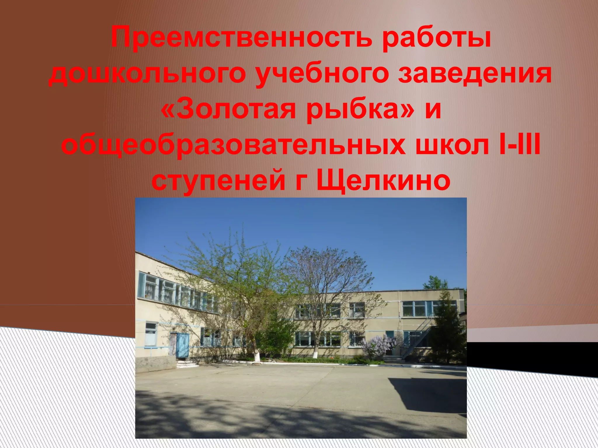 Документ описывает преемственность между дошкольным учебным заведением "Золотая рыбка" и общеобразовательными школами в городе Щелкино, акцентируя внимание на готовности детей к школьному обучению. Рассматриваются различные компоненты готовности к школе, включая психологическую, интеллектуальную, физическую и социальную готовность, а также важность непрерывного образования и взаимодействия между детским садом и школой. В документе также описаны этапы реализации преемственности, включая совместные мероприятия и подготовку детей к школе.