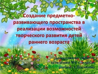 Документ описывает подходы к организации развивающей среды в дошкольном учебном заведении No5 «Золотая рыбка» в Щелкино, акцентируя внимание на создании безопасной и эффективной среды для детей. Основные задачи включают развитие личностных качеств, творческого воображения и активного познавательного интереса у детей. Также рассматриваются различные модели организации образовательного процесса и разнообразие предметных зон, соответствующих возрастным особенностям и интересам детей.