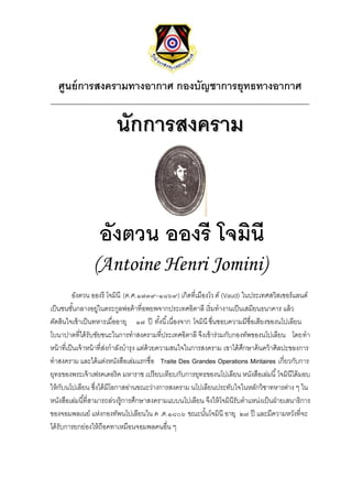 โจมินีได้ เสนอทฤษฎีของ “เส้ นทางปฏิบัติการ” ไว้ ในหนังสือเกี่ยวกับทฤษฎีทางทหารเรื่องแรก