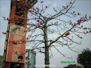 木棉花是一种多年生落叶大乔木,原产于印度,广泛种植于台湾。它在每年春季盛开鲜艳的红色或橙红色花朵,并因其美丽的花盛景而被用于庭园绿化。然而,随着环保意识的提升,木棉花因引发呼吸健康问题而面临砍伐和移植的命运。