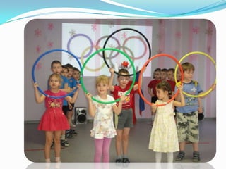 Документ описывает план мероприятий для подготовительной группы детского сада в рамках олимпийской недели. Включены беседы, спортивные праздники, совместные работы с родителями, а также творческие занятия, такие как лепка и рисование. Завершится неделя закрытием и награждением участников.