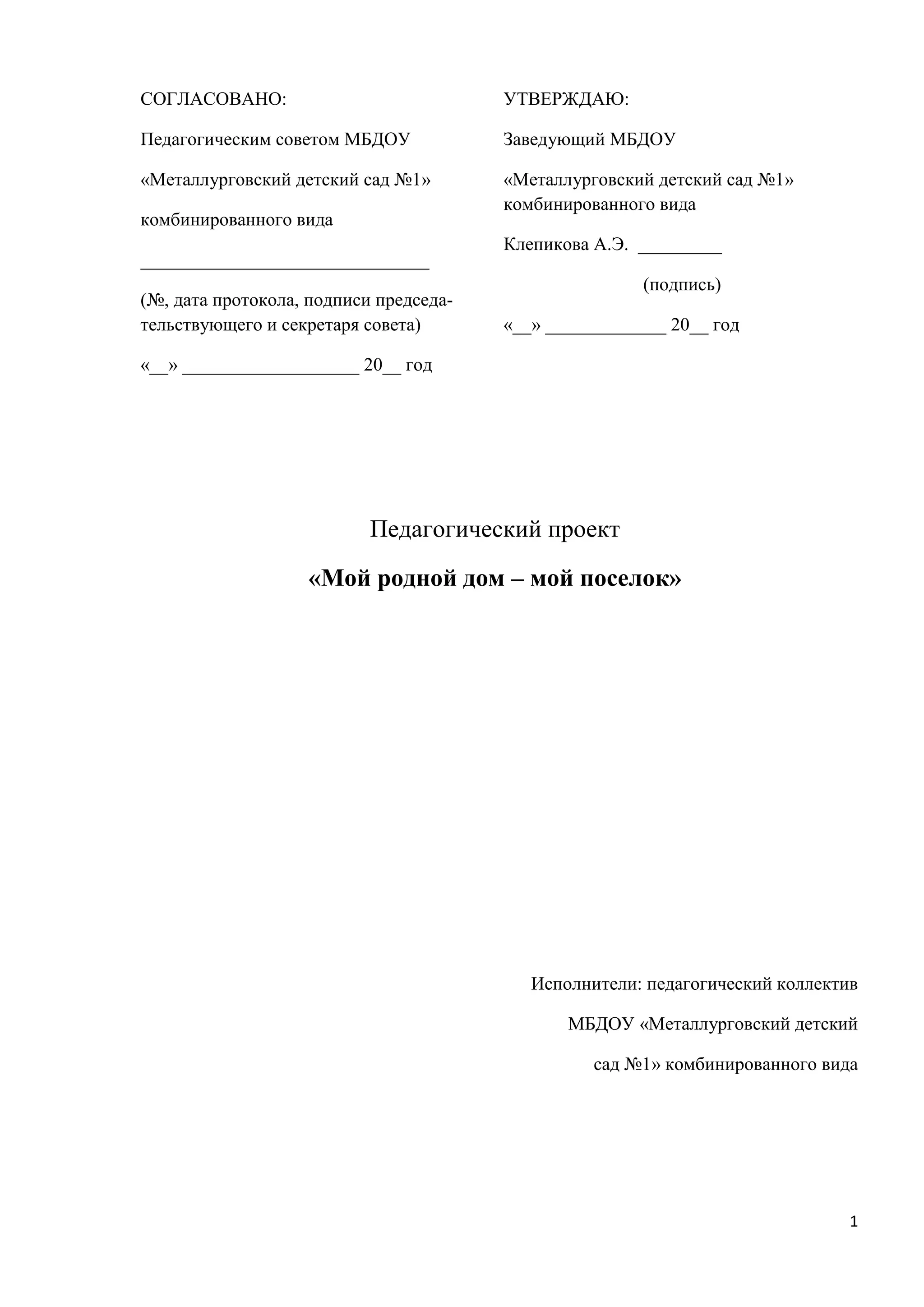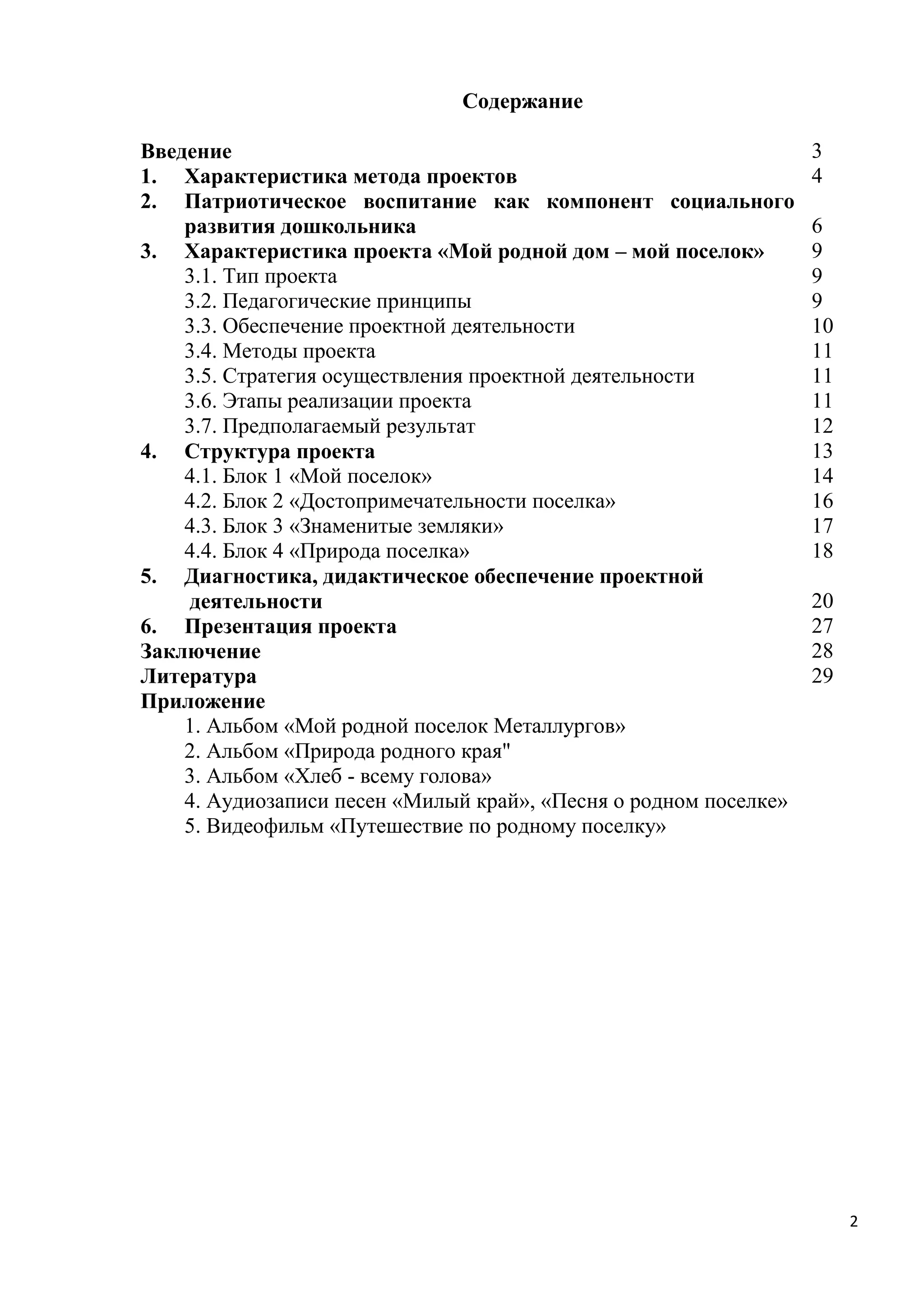 Документ описывает педагогический проект «Мой родной дом – мой поселок», разработанный для воспитания патриотических чувств у дошкольников через исследование родного края. Основное внимание уделяется методам проектной деятельности, характеристикам проекта, задачам и ожидаемым результатам. Также подчеркивается важность формирования гражданской позиции и нравственных качеств у детей через взаимодействие с окружающей культурой и историей.