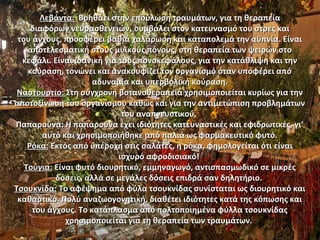 φυτό κατά του Καρκίνου και κατά της οξείας πνευμονίας. Εξωτερικώς με