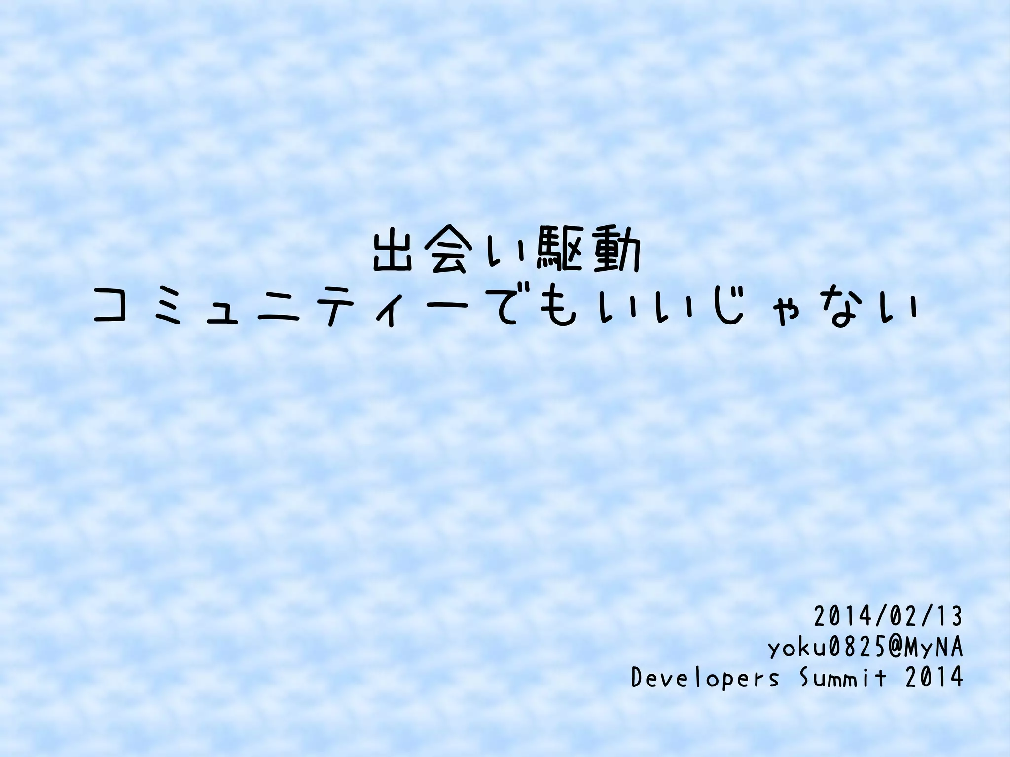 出会い駆動 コミュニティーでもいいじゃない 2014/02/13 yoku0825@MyNA Developers Summit 2014