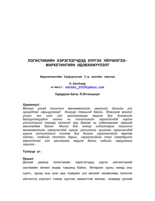 Similar to Н.Батбаяр - ЛОГИСТИКИЙН ХЭРЭГЛЭГЧДЭД ХҮРГЭХ ҮЙЛЧИЛГЭЭ-МАРКЕТИНГИЙН ИДЭВХИЖҮҮЛЭЛТ