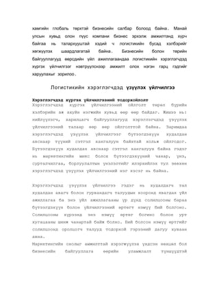 ЛОГИСТИКИЙН ХЭРЭГЛЭГЧДЭД ХҮРГЭХҮЙЛЧИЛГЭЭМАРКЕТИНГИЙН ИДЭВХИЖҮҮЛЭЛТ