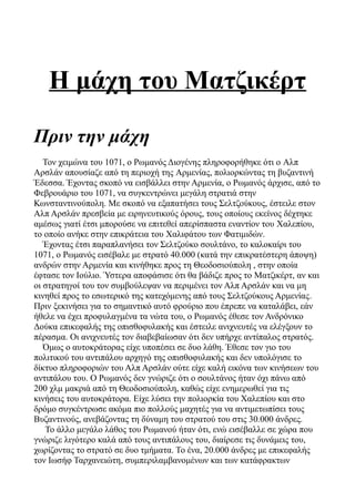 ίδιος και η φατρία του. Στις 26 Αυγούστου του 1071 θα δινόταν η μεγάλη μάχη.