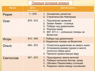 Документ описывает правление и достижения князей Древней Руси, начиная с Рюрика и заканчивая Ярославом Мудрым. Указывается на значимые события, такие как принятие христианства, успешные походы и важные реформы в управлении. Также рассматриваются категории древнерусского общества и роль различных слоев населения.
