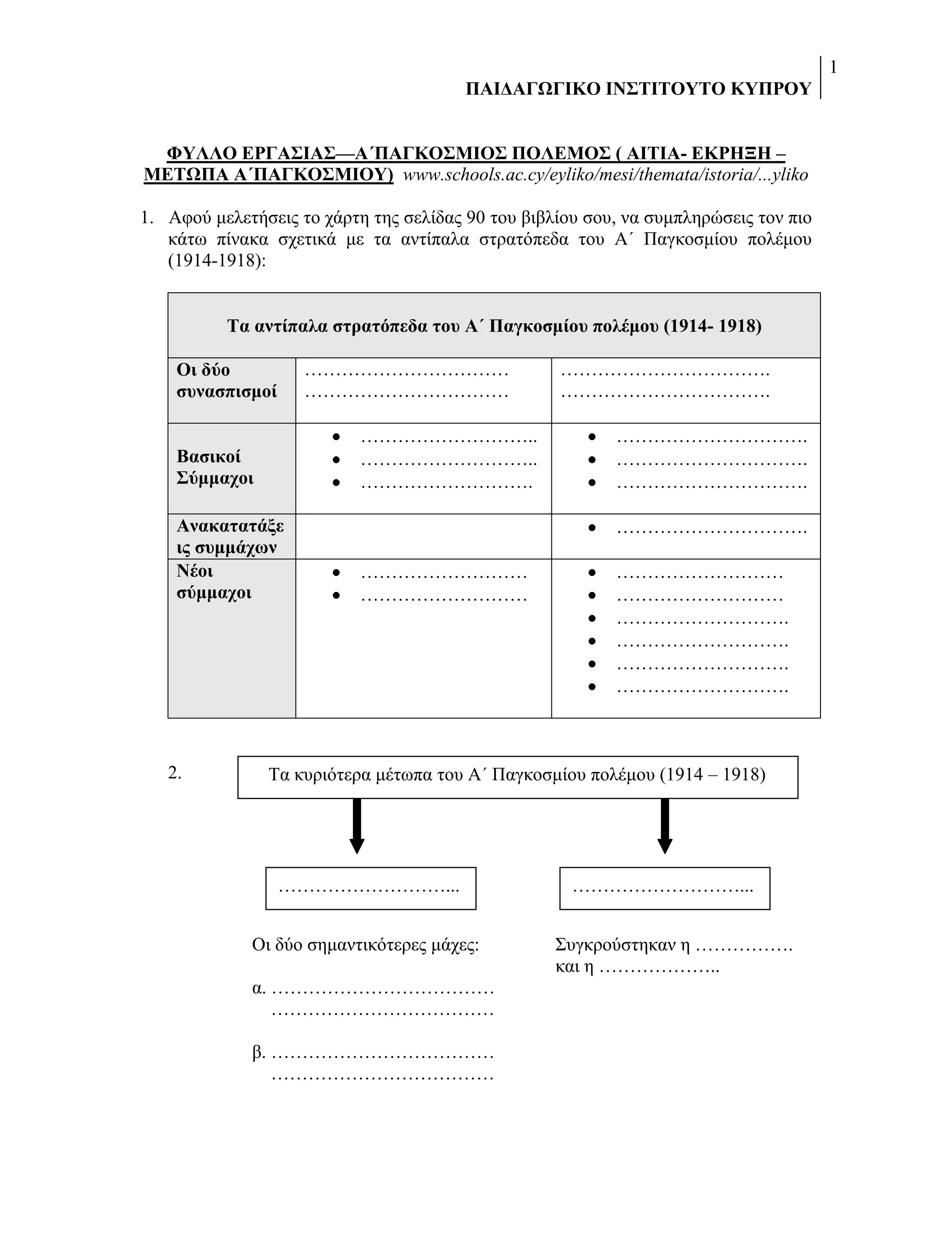 ΜΙΑ ΑΞΙΟΛΟΓΗ ΠΡΟΤΑΣΗ ΑΞΙΟΛΟΓΗΣΗΣ ΤΗΣ ΓΝΩΣΗΣ ΓΙΑ ΤΟΝ Α΄ΠΑΓΚΟΣΜΙΟ ΠΟΛΕΜΟ ΑΠΟ ΤΟ ΠΑΙΔΑΓΩΓΙΚΟ ΙΝΣΤΙΤΟΥΤΟ ΚΥΠΡΟΥ