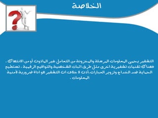 يحتوي المستند على مجموعة من الروابط الإلكترونية التي تشير إلى مصادر معلوماتية متنوعة، مما يدل على أهمية الوصول إلى المعرفة حول أمن المعلومات. تهدف هذه الروابط إلى تعزيز الفهم وتوفير الموارد للأفراد المهتمين. تعد هذه المصادر بمثابة أدوات تعليمية وتحفيزية في مجال دراسات الأمن السيبراني.