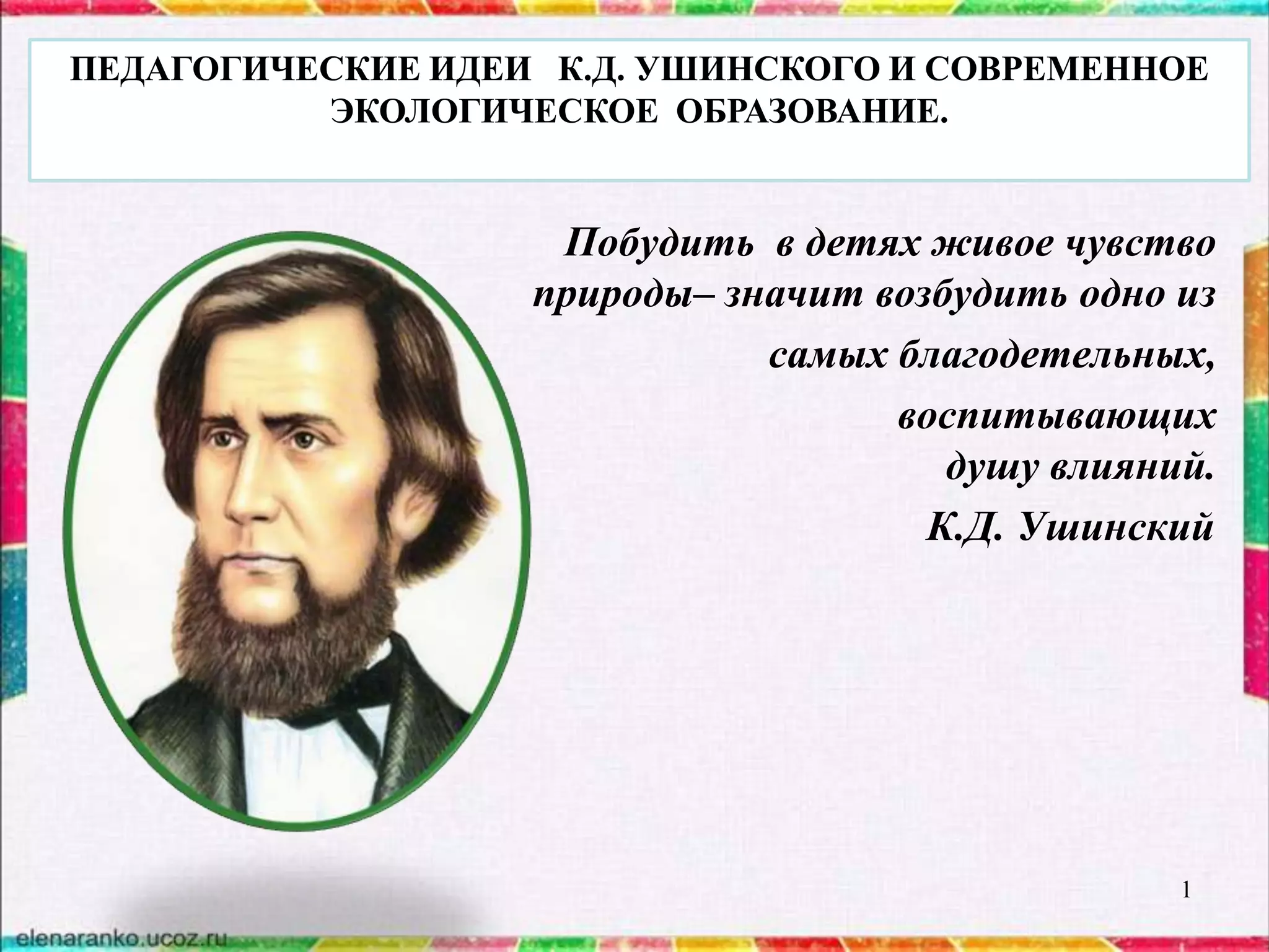 Документ описывает педагогические идеи Константина Ушинского, подчеркивая важность обучения детей взаимодействию с природой для формирования экологического сознания. Ушинский утверждает, что природа имеет активное влияние на культуру и духовную жизнь, призывая к расширению общения ребенка с окружающим миром. Также подчеркивается необходимость природоохранного воспитания через различные формы деятельности, включая конкурсы и акции.